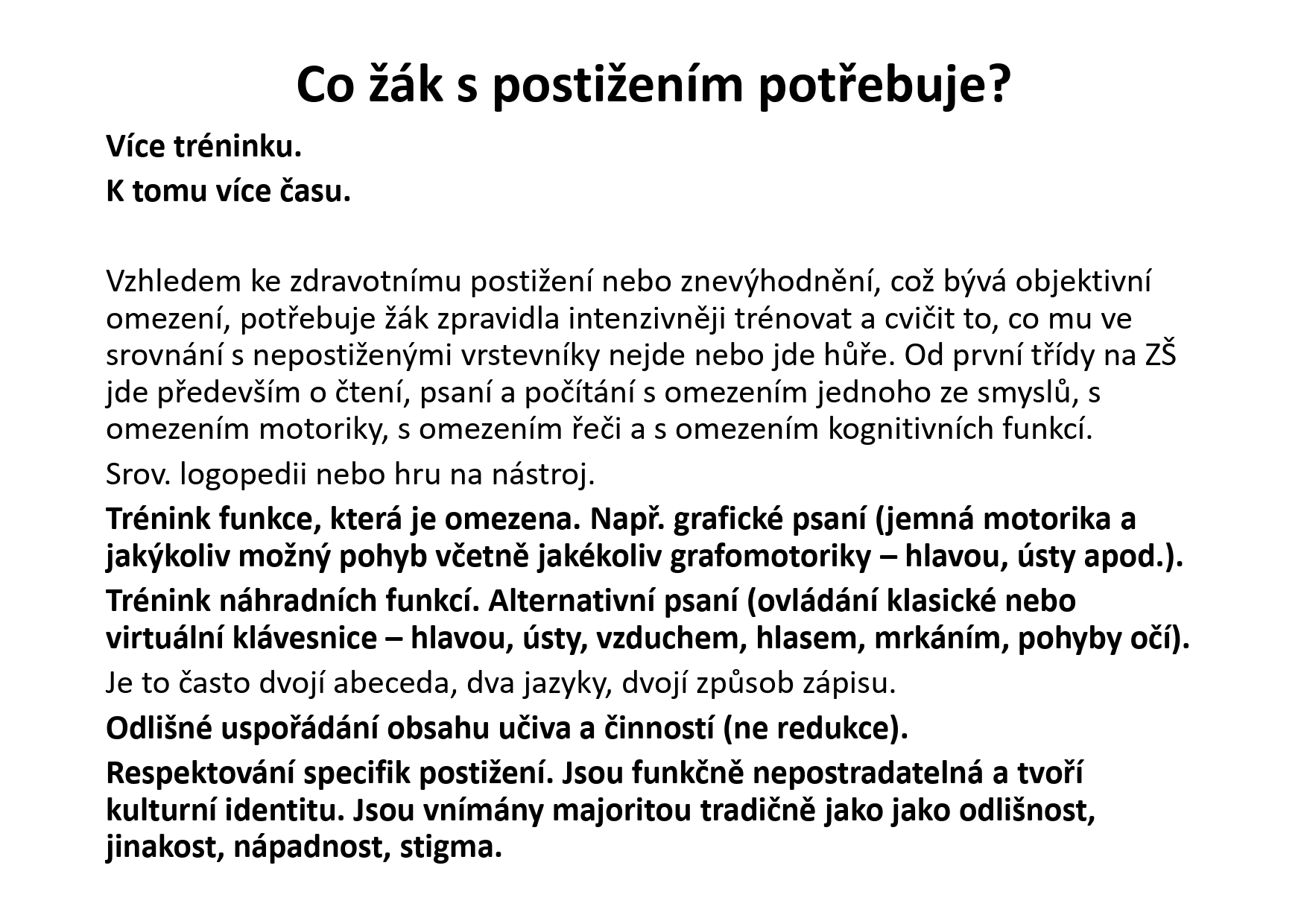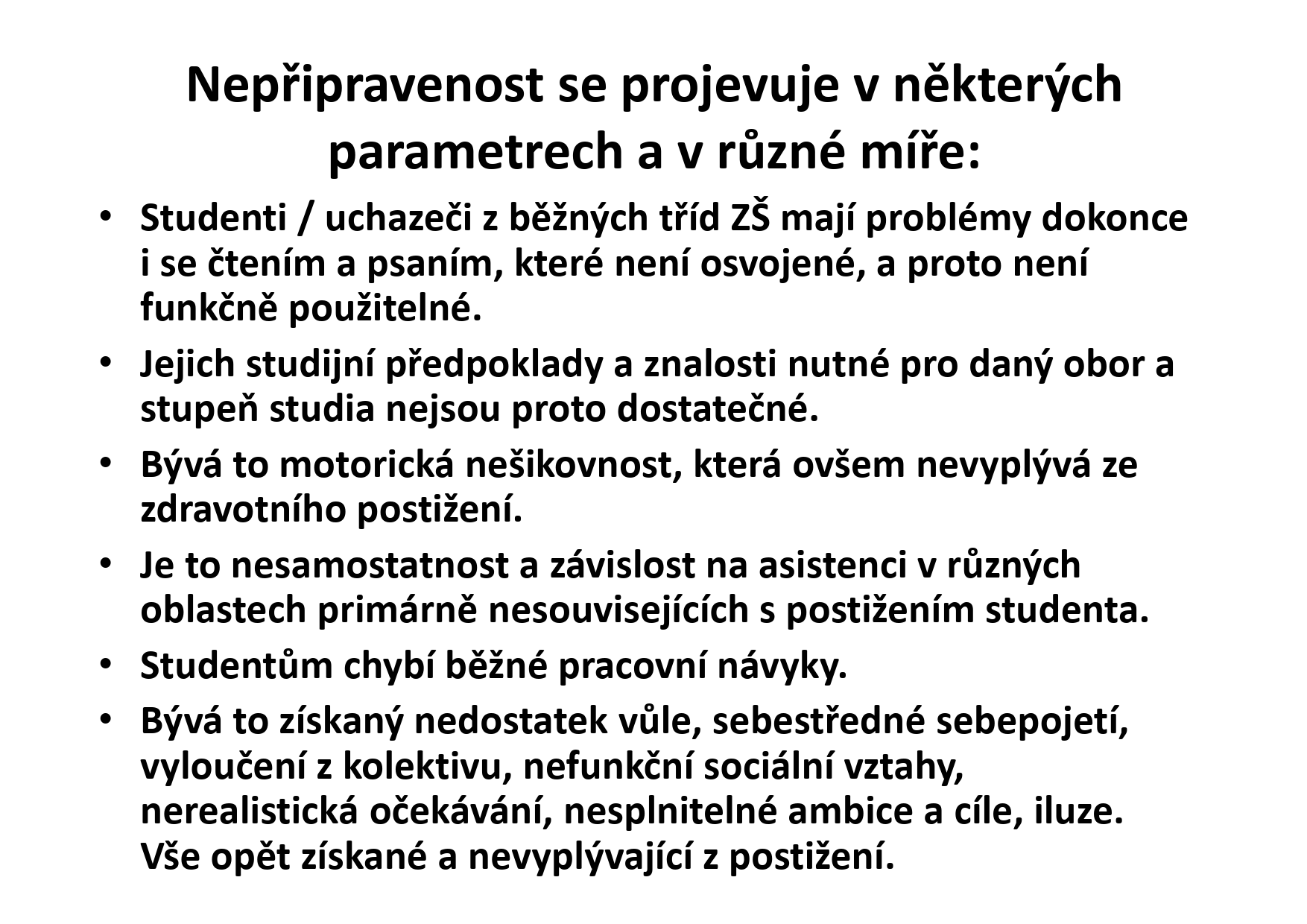 Selhávání podpůrných opatření ve vzdělávání žáka s postižením v běžné třídě, limity a rizika asistence a úlev.